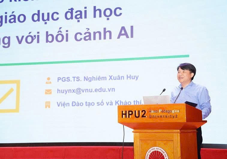 Tại Phiên 2, PGS. TS Nghiêm Xuân Huy - Viện trưởng, Viện Đào tạo số và Khảo thí, Đại học Quốc gia Hà Nội báo cáo với chủ đề: “Chiến lược kiểm tra - đánh giá trong giáo dục đại học thích ứng với bối cảnh AI”.