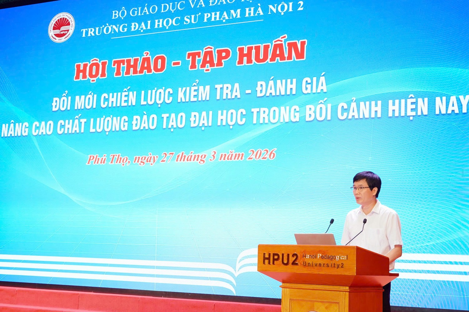 Ngày 27 tháng 3 năm 2026, Trường ĐHSP Hà Nội 2 tổ chức Hội thảo - Tập huấn “Đổi mới chiến lược kiểm tra, đánh giá nhằm nâng cao chất lượng đào tạo đại học trong bối cảnh hiện nay”.