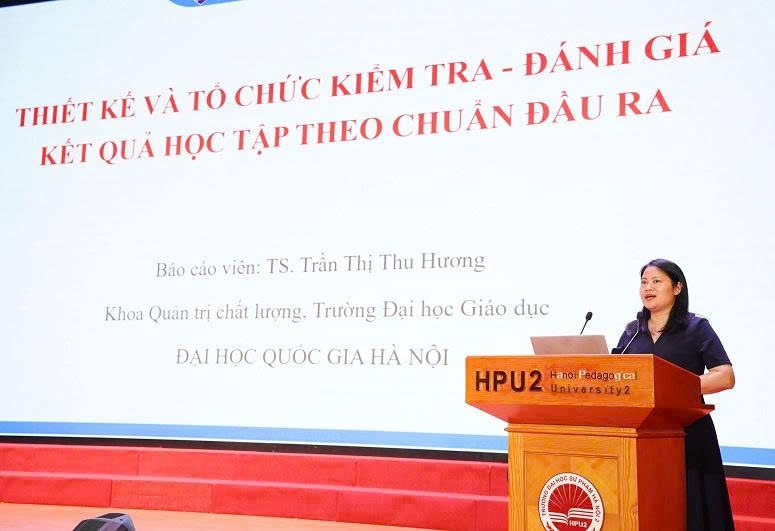 Trong báo cáo, TS Trần Thị Thu Hương đưa ra những khuyến nghị khi thiết kế và tổ chức kiểm tra - đánh giá kết quả học tập theo chuẩn đầu ra: