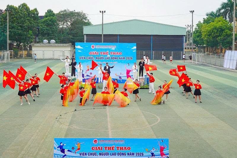 Lãnh đạo Trường và Ban Tổ chức Giải đấu tặng hoa chúc mừng đại diện vận động viên các nội dung thi đấu và đại diện Tổ trọng tài với sự tin tưởng các vận động viên và trọng tài sẽ tổ chức và thi đấu thành công, lập nhiều thành tích tại Giải Thể thao viên chức, người lao động năm 2026. Ngay sau khai mạc, Giải thể thao bắt đầu với trận thi đấu nội dung bóng đá nam giữa 2 đội: Liên quân 1 và Liên quân 3.