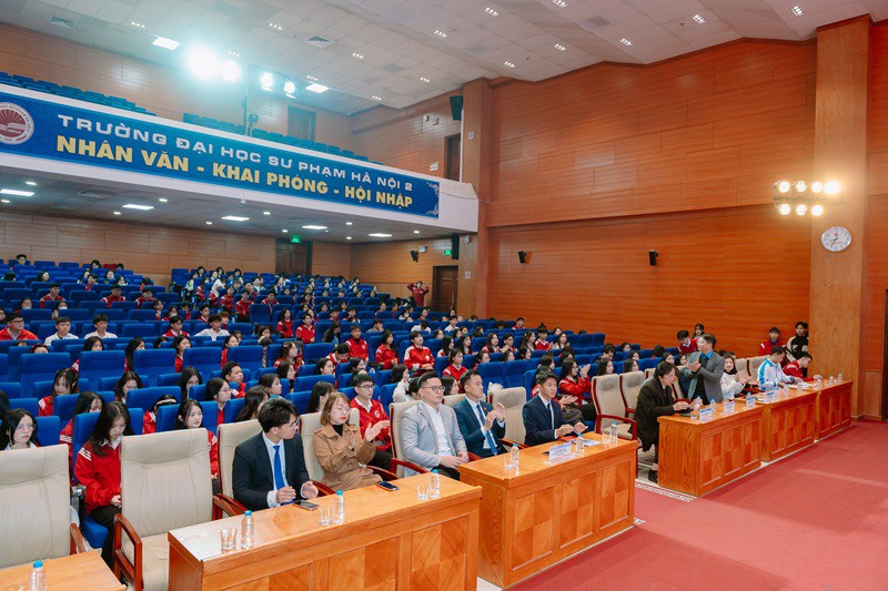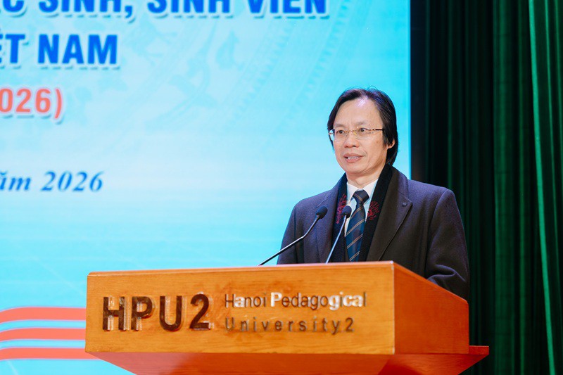 Mở đầu Chương trình, đồng chí Nguyễn Đình Duy - Chủ tịch Hội Sinh viên Việt Nam Trường ĐHSP Hà Nội 2 trình bày Diễn văn kỷ niệm 76 năm Ngày truyền thống học sinh, sinh viên và Hội Sinh Việt Nam (09/01/1950 - 09/01/2026).