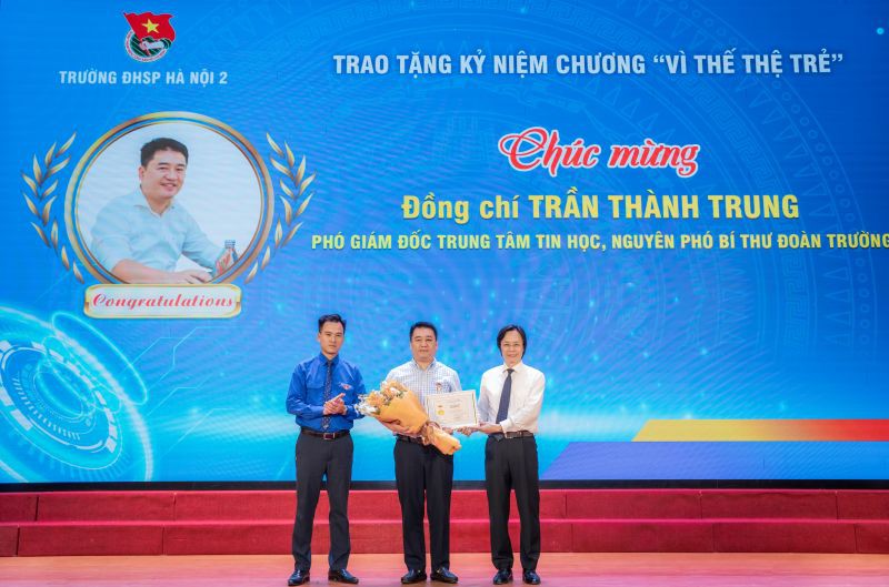 Trong Lễ kỷ niệm, đồng chí Trần Thành Trung - Phó Giám đốc Trung tâm Tin học, nguyên Phó Bí thư Đoàn Thanh niên Trường ĐHSP Hà Nội 2 vinh dự nhận Kỷ niệm chương “Vì thế hệ trẻ”. Đây là phần thưởng cao quý nhất của Đoàn TNCS Hồ Chí Minh dành tặng cho các đồng chí đã có những đóng góp xuất sắc trong sự nghiệp đào tạo, bồi dưỡng, giáo dục thế hệ trẻ Việt Nam, nhằm tri ân sự quan tâm, hỗ trợ, đồng hành của các đồng chí lãnh đạo các đơn vị với công tác đoàn, phong trào thanh thiếu nhi nói riêng và sự nghiệp giáo dục thế hệ trẻ nói chung, và ghi nhận các cá nhân cán bộ Đoàn nhiều năm liền hoàn thành tốt nhiệm vụ công tác, có phẩm chất đạo đức tốt, có sáng kiến đem lại hiệu quả cho công tác Đoàn, Hội, Đội và phong trào thanh thiếu nhi tại địa phương.