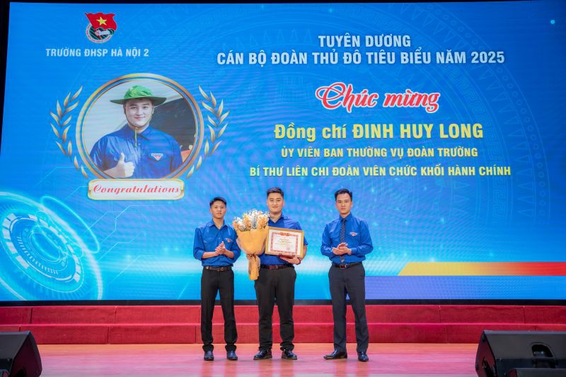 Đồng chí Đinh Huy Long - Ủy viên BTV Đoàn Thanh niên Trường ĐHSP Hà Nội 2 nhận danh hiệu “Cán bộ Đoàn Thủ đô tiêu biểu” của Thành Đoàn Hà Nội